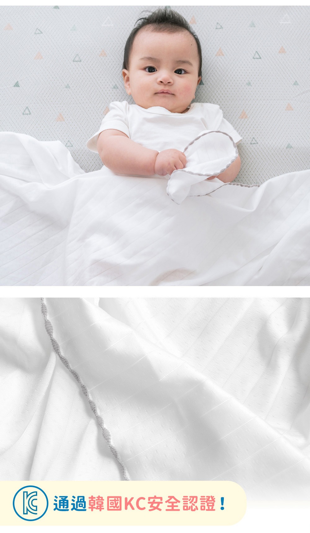 冰紗涼感被採用韓國科技涼感布DURARON ,快速導熱結構, 接觸皮膚的瞬間,帶走身上的熱氣,給寶寶天然持久的涼感。